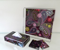 Shop for your custom design serving trays, coasters sets, tissue boxes, napkin holders, chocolate boxes and many more home accessories to distinguish your home or occasion.