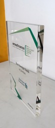 Our acrylic awards can be laser engraved or laser color printed and customized with your logo and text.